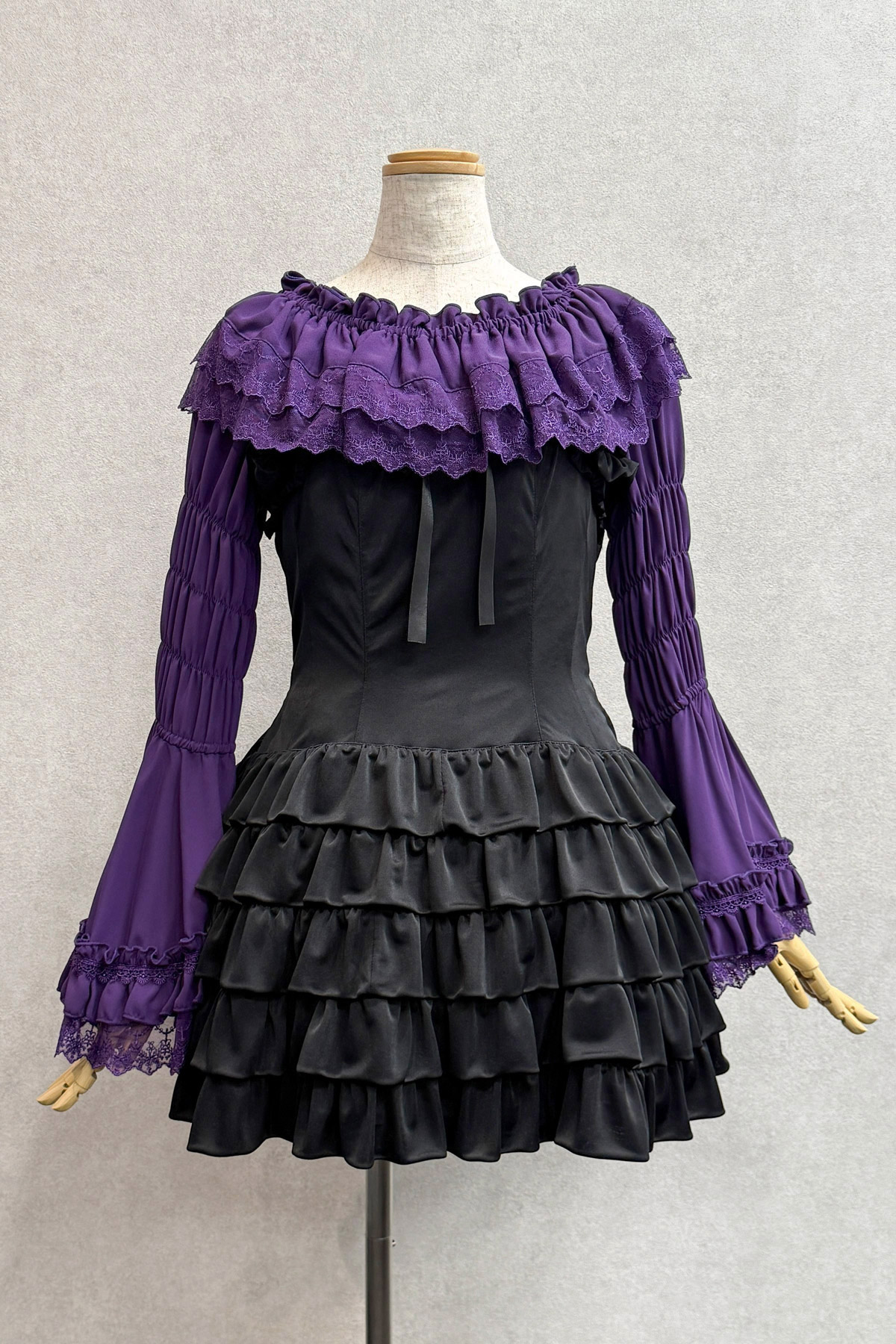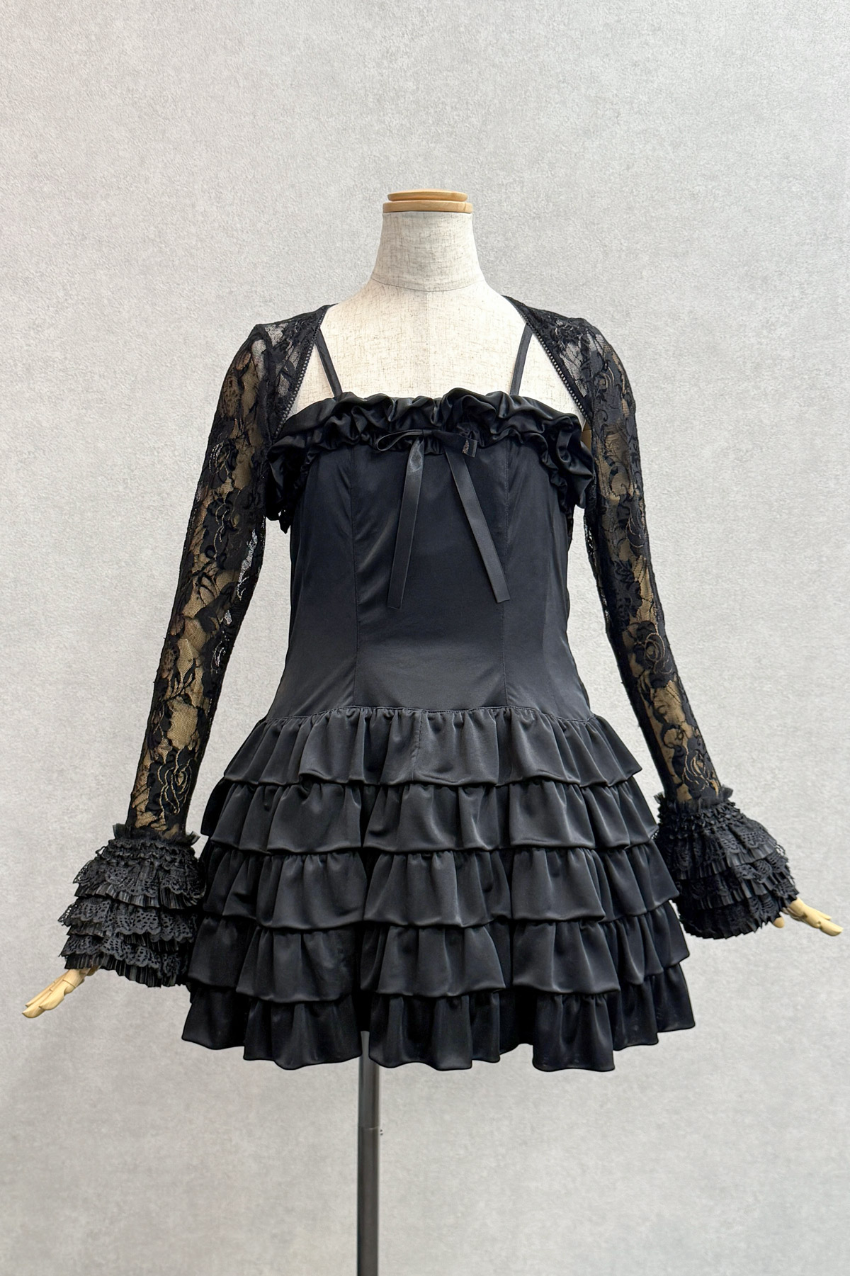 ティアードフリルワンピース:黒