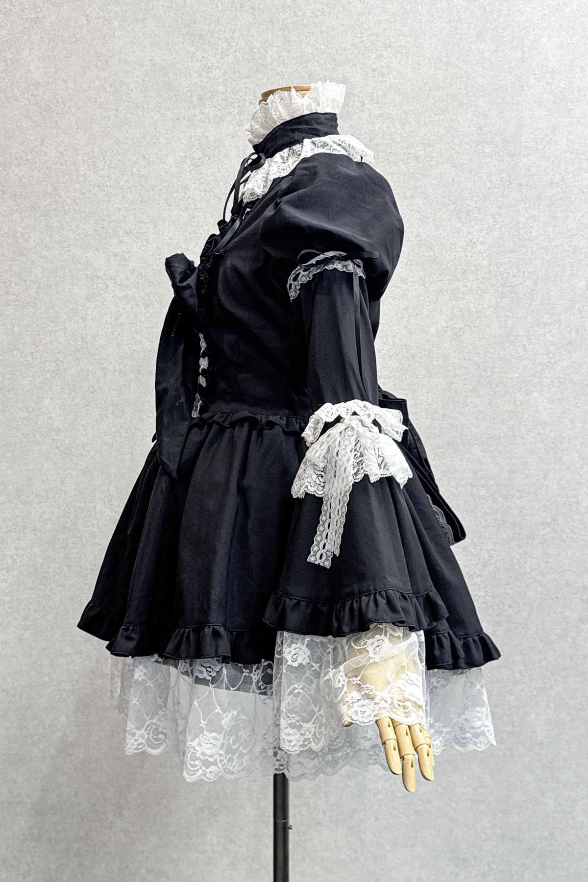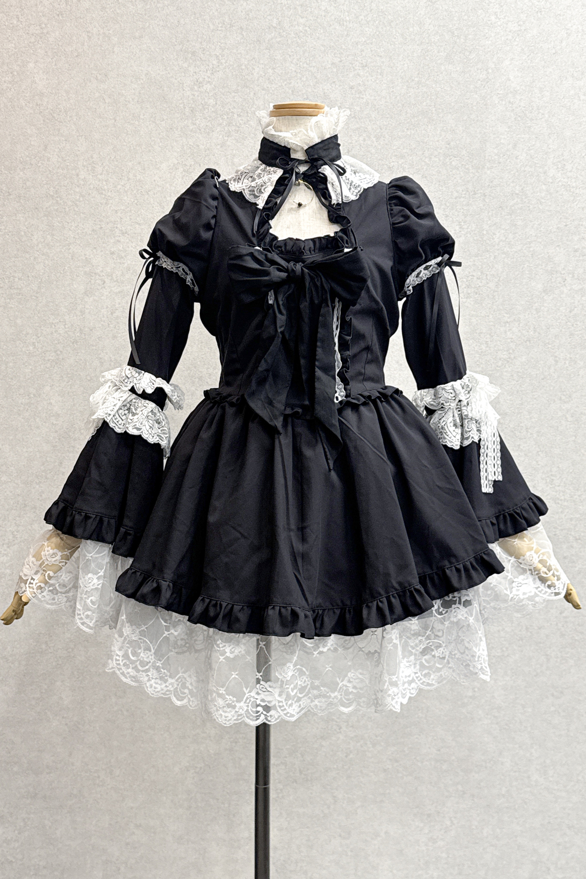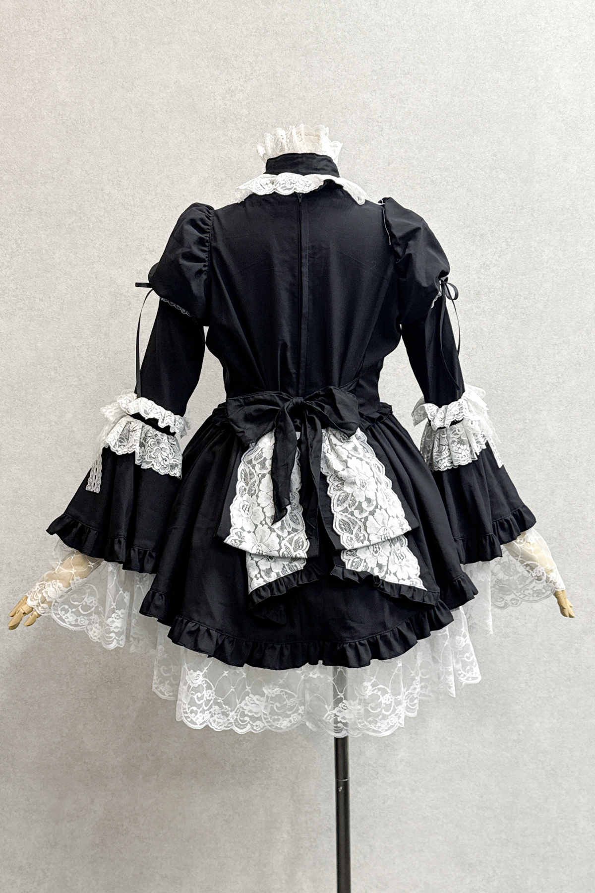 チョーカー・バッスルリボン付きヴィクトリアン調ワンピース:黒×白レース