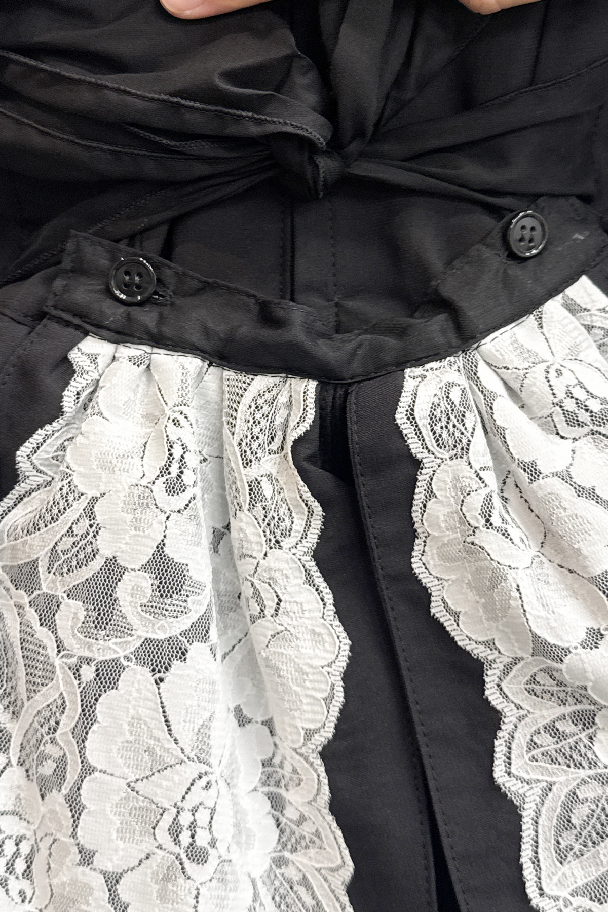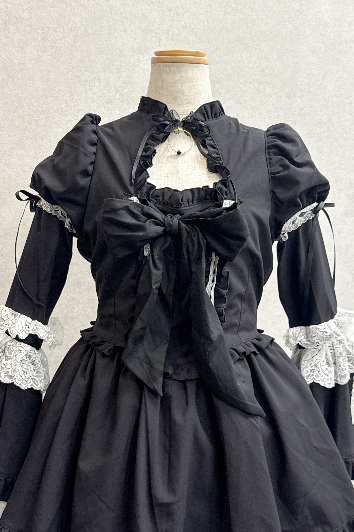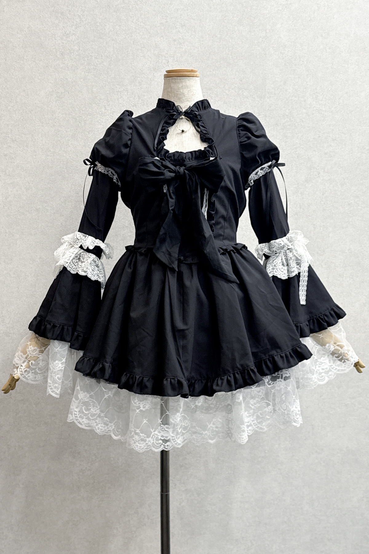 チョーカー・バッスルリボン付きヴィクトリアン調ワンピース:黒×白レース