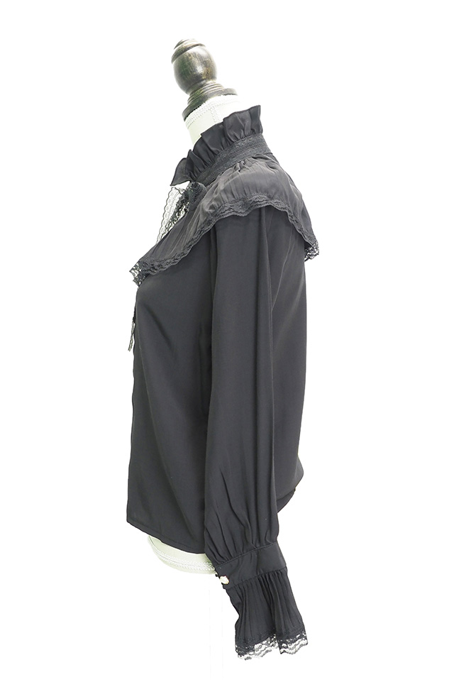 首元にリボンのレースが付いているブラウスです。ふんわりと柔らかい雰囲気に